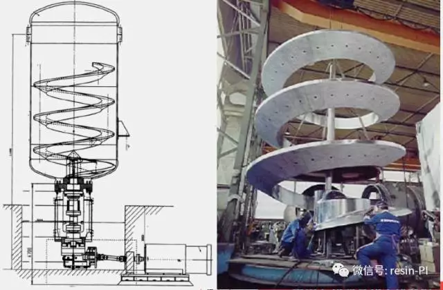 Novolen气相工艺采用带双螺带搅拌立式反应器,该反应器能够使催化剂在气相聚合的单体中分布均匀,尽可能使每个聚合物颗粒保持一定的钛/铝/给电子体的比例,以此解决气相聚合中气固两相之间不易均匀分布的问题。