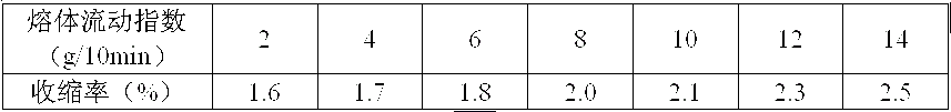 同一种原料分子量越大,其收缩率越小。以PP为例,不同大小的熔体流动指数收缩率大小完全不同,具体见表2所示。