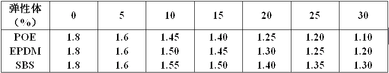 可以添加的弹性体包括POE、EPDM、SBS等,各类弹性体对塑料收缩率的影响接近,具体见表10所示。