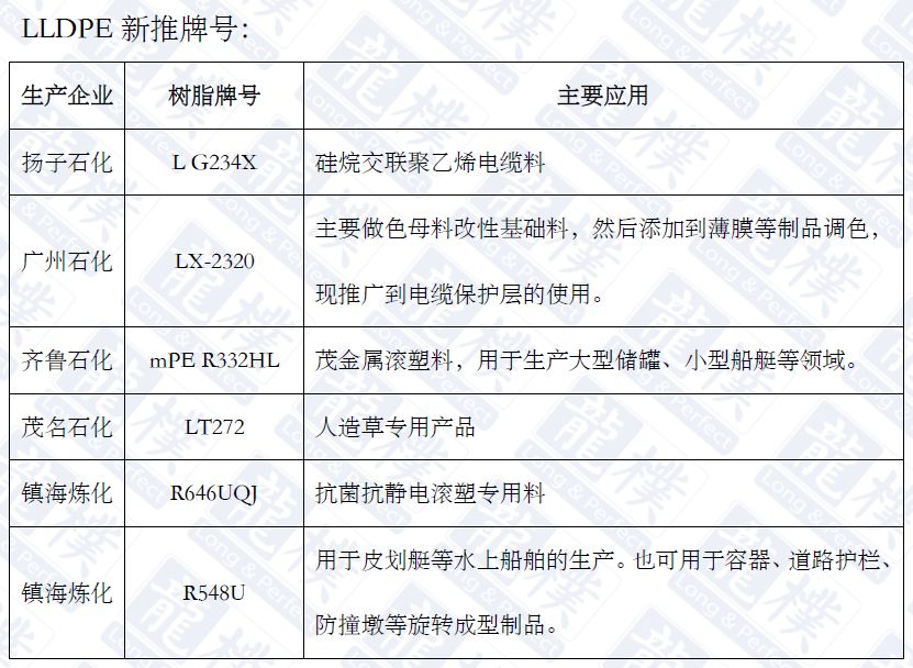 LLDPE适合用作通信电缆的绝缘料和护套料,特别适合于高中压防水、环境苛刻的电缆护套。交联LLDPE用于电力电缆绝缘料。