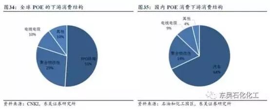 POE下游消费结构包括TPO终端、聚合物改性、电线电缆等,其中替代EPDM作为共混型TPO原料和聚合物改性是最主流的两大应用。