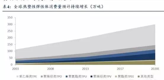 热塑性弹性体能较好解决传统橡胶制品加工的不足,应用于非轮胎橡胶制品领域,替代传统的热固性橡胶。热塑性弹性体用于树脂以及工程塑料改性优点明显,我国是汽车、家电生产大国,是一个全新的增量市场。POE处在小试阶段,十三·五期间冲击实现国产化,同时配套原料α-烯烃的产业化也同样备注关注。