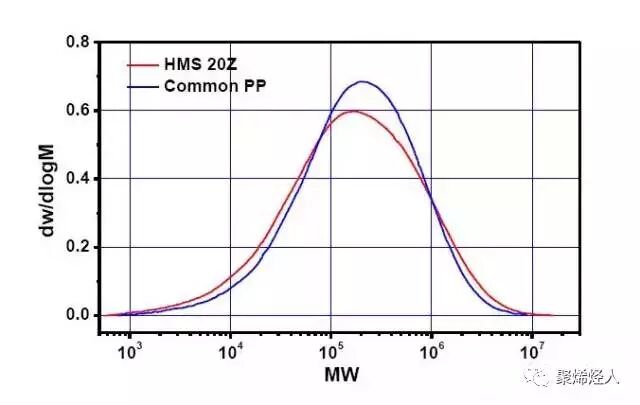 相比普通PP,中石化的HMS 20Z分子量分布更宽。